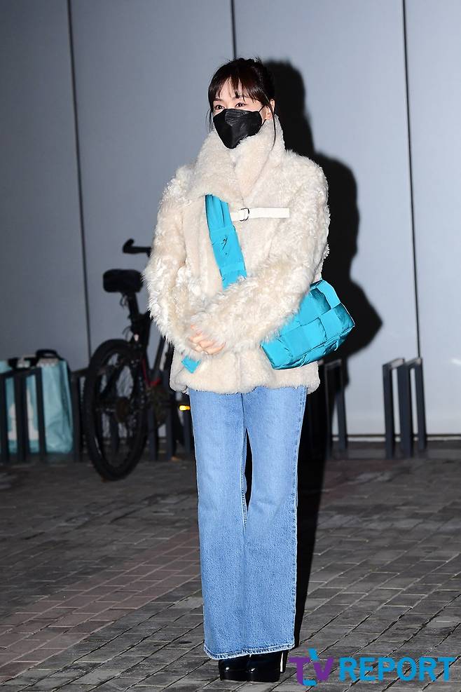 [T포토] 강예원 '귀여운 아형 출근길 패션'
