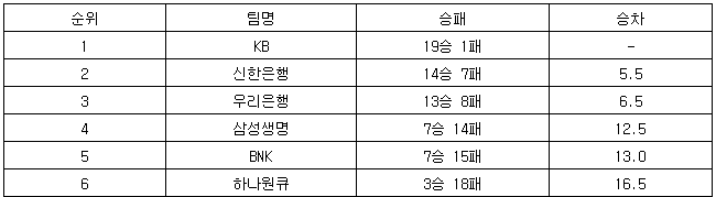 [여자농구 중간순위] 13일