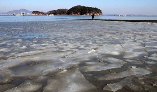 한파로 얼어붙은 서해 바다