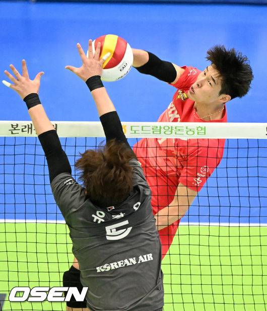 [OSEN=수원, 민경훈 기자] 13일 오후 수원 실내체육관에서 ‘2021-2022 도드람 V-리그’ 남자부 한국전력과 대한항공의 경기가 열렸다.