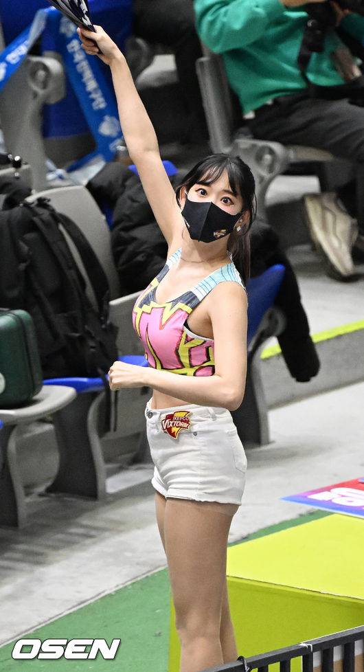 4세트 한국전력 김한나 치어리더가 관중석에서 응원을 하고 있다. 2022.01.13 / rumi@osen.co.kr