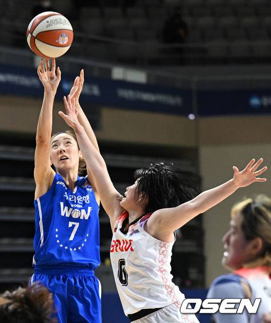 [OSEN=아산, 김성락 기자] 13일 오후 충청남도 아산시 풍기동 이순신종핣운동장에서 '삼성생명 2021-22 여자프로농구' 우리은행 우리WON과 BNK 썸의 경기가 열렸다.