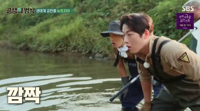13일 방송된 SBS '공생의 법칙'에선 뉴트리아, 큰입배스 포획에 나선 박군 김병만 육준서의 모습이 공개됐다.