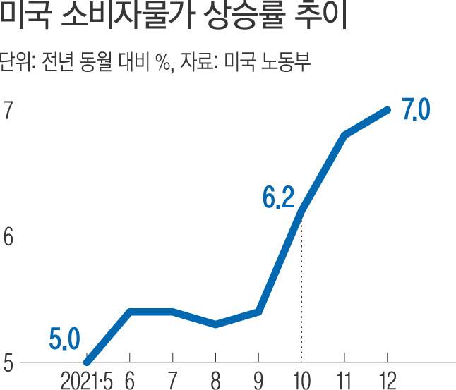 미국의 지난해 12월 소비자물가 상승률이 약 40년 만에 최고치로 치솟았다. 오는 3월 미 중앙은행인 연방준비제도(Fed·연준)가 금리를 인상할 가능성이 높아졌다. 전 세계 물가에 큰 영향을 미치는 중국의 생산자물가 상승률은 시장 예상치를 밑돌면서 물가 상승 우려를 일부 완화시켰다.