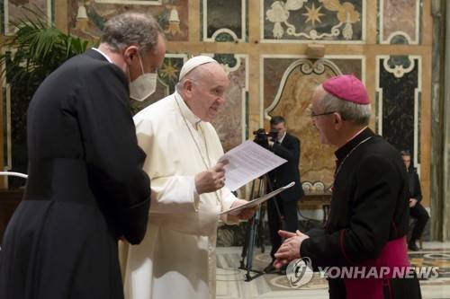 epa09682763 A handout picture provided by the Vatican Media shows Pope Francis during an audience with a Delegation of the Catholic Action Movement of France, on the occasion of the pilgrimage to Rome, in Vatican, 13 January 2022. EPA/VATICAN MEDIA HANDOUT HANDOUT EDITORIAL USE ONLY/NO SALES