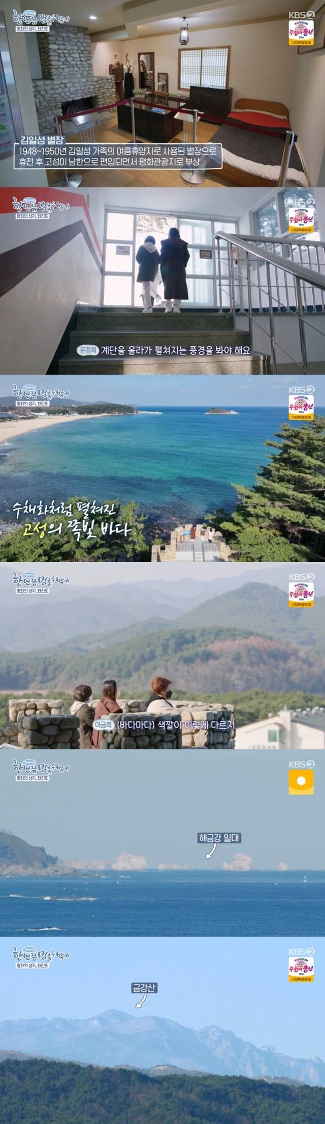 김일성 별장에서 바라본 바다는 아름다운 경관을 자랑했고, 이선희 이금희 문정희가 “기가 막히다”고 모두 입을 모아 감탄했다. 이선희는 “청정하다는 게 느껴진다”고 말했고, 이금희는 “(바다) 색깔이 다르다”고 놀랐다.