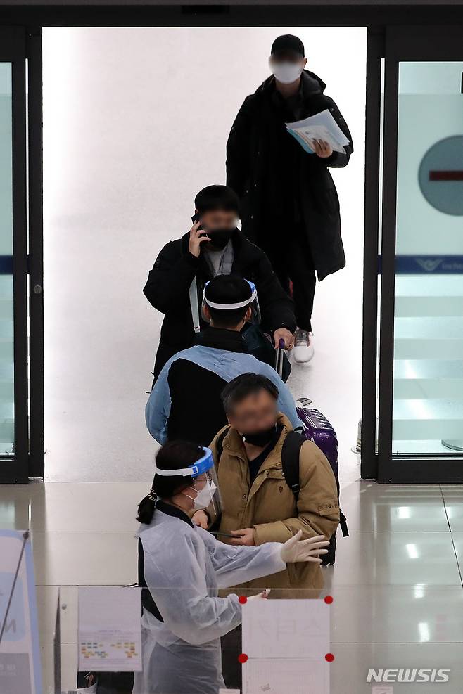 [인천공항=뉴시스] 백동현 기자 = 대규모 반정부 시위가 일어난 카자흐스탄 알마티에 발이 묶였던 아시아나 항공 승객들이 13일 오후 인천국제공항을 통해 귀국하고 있다. 2022.01.13. livertrent@newsis.com