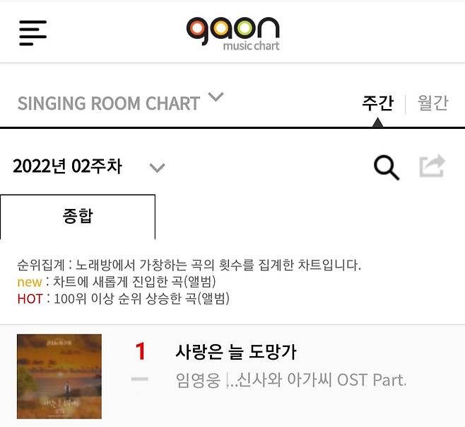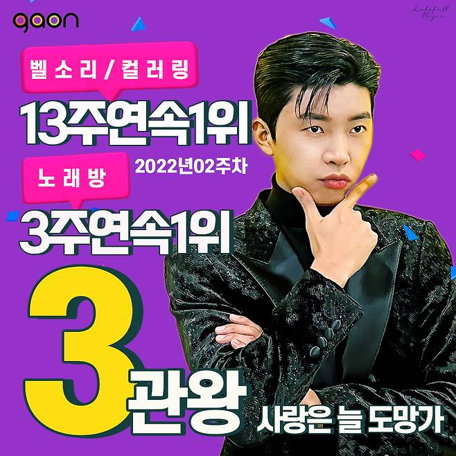 가온차트를 운영하는 한국음악콘텐츠협회 측은 1월 13일 “2주차(2022.01.02~2022.01.08) 가온차트에서 임영웅의 첫 드라마 OST인 '사랑은 늘 도망가'로 벨소리, 컬러링차트 13주 연속 1위, 노래방차트 3주 연속 1위에 랭크되며 3관왕을 차지했다고 발표 했다.