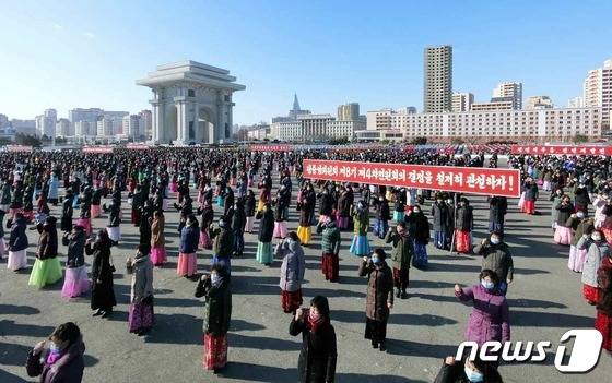 (평양 노동신문=뉴스1) = 북한 노동당 기관지 노동신문은 14일 당 중앙위원회 제8기 제4차 전원회의 결정을 관철하기 위한 여맹(조선사회주의여성동맹)일꾼들과 여맹원들의 궐기대회가 전날 개선문광장에서 진행됐다고 보도했다. 대회에서는 김정은 당 총비서에게 보내는 맹세문이 채택됐고 대회 후에는 여맹원들의 집중선동활동이 전개됐다.