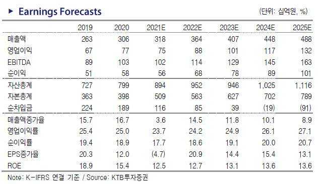 KTB투자증권은 올해 실적 추정치를 하향 조정했다. 코로나19 장기화로 확장 ERP(Extended ERP) 부문 매출액 추정치를 하향했고, 매출채권 팩토링 서비스의 팩터 자금 소진 비율 하향, 아마라스텐(Amaranth 10) 주요 기능 출시에 따른 관련 무형자산상각비 등을 반영했다는 설명이다.