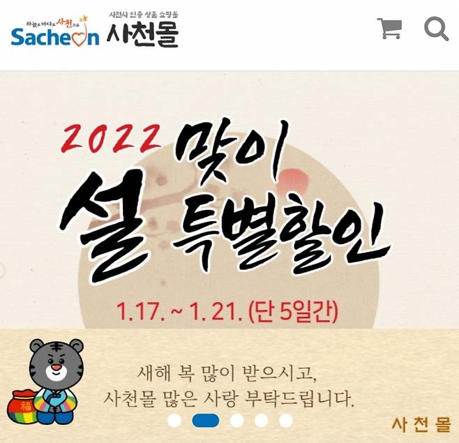 경남 사천시가 설 명절을 맞이해 오는 17일부터 21일까지 5일간 사천몰에서 2022년 살맞이 사천몰 특별할인 판매행사를 실시한다.