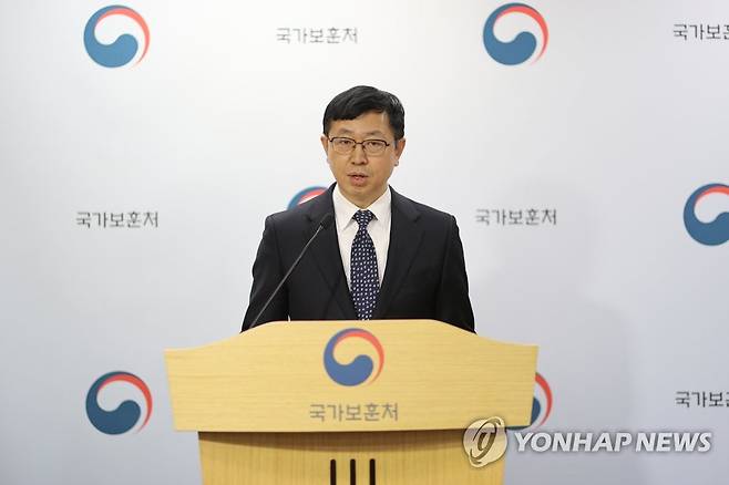 (서울=연합뉴스) 전종호 국가보훈처 보훈심사위원회 사무국장이 14일 오전 정부세종청사 국가보훈처 기자실에서 '보훈심사 국민참여단 선정'에 대한 브리핑을 하고 있다. 2022.1.14