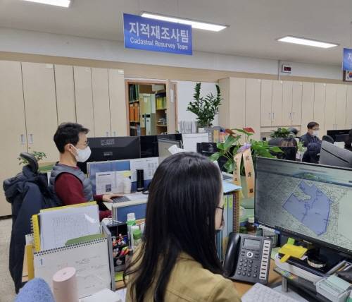이에 구는 2019년부터 세계측지계 좌표변환 모델을 연구해 변환계수 산출 및 검증 등을 거쳐 최종 성과를 결정하고 전국 최초로 지적공부에 등록된 모든 토지를 정확하고 안전하게 좌표 변환하는 쾌거를 이뤘다.