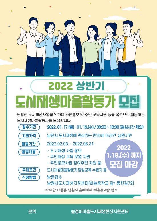 자세한 사항은 남원시 홈페이지 채용공고란 및 숲정이마을도시재생현장지원센터를 통해 확인할 수 있다.
