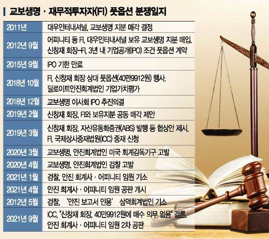 교보생명 관계자는 "무리한 가압류는 국제상업회의소(ICC) 중재에서 사실상 완패한 이후 별다른 대안이 없어진 어피니티 측이 여론전에 활용하기 위한 의도적 흠집내기"라며 "가압류 신청 금액이 어피니티측이 주장한 채권금액에 비해 턱없이 부족하고 실효성이 없음에도 가압류를 반복하는 것은 교보생명의 IPO를 방해할 목적으로 보인다"고 지적했다.