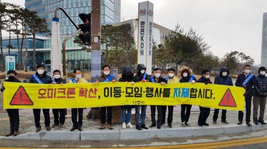 전남 나주시가 코로나19 변이바이러스인 '오미크론' 확산 차단을 위한 생활방역 준수와 타 지역 방문 및 모임 자제 등 '잠시 멈춤 운동'의 참여를 요청했다.