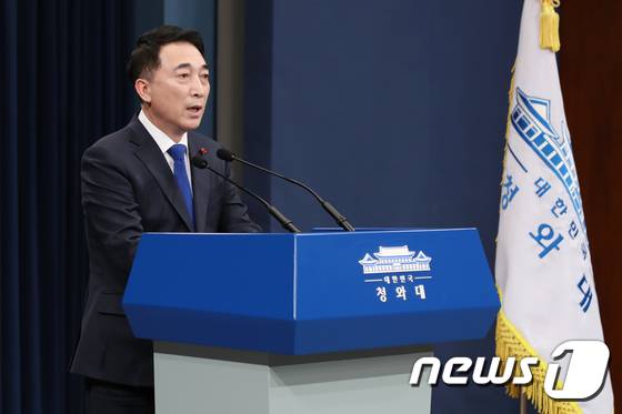 (서울=뉴스1) 이광호 기자 = 박수현 청와대 국민소통수석이 14일 춘추관 브리핑룸에서 신종 코로나 바이러스 감염증(코로나19) 방역 조치와 관련해 브리핑을 하고 있다. 박 수석은 정부의 강화된 방역조치에 대한 일각의 비판적 여론에 대해 "국민의 생명과 직결된 방역을 정치적으로 접근해서는 안 된다"고 말했다. 2022.1.14뉴스1