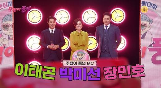 공개된 영상은 '주접이 풍년'을 이끌어갈 MC 이태곤, 박미선, 장민호가 스튜디오에 등장하는 모습으로 시작됐다. MC진은 핑크색 단체복을 맞춰 입고 깃발을 흔드는 깃발부대의 압도적인 포스에 놀라움과 감탄을 금치 못했다.