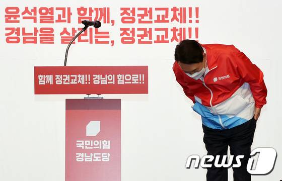 텃밭 찾은 윤석열, 허리숙여 인사