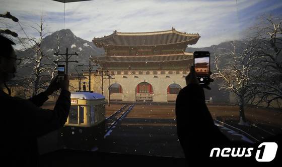 (서울=뉴스1) 권현진 기자 = 14일 서울 종로구 경복궁역 서울메트로미술관에서 열린 '광화시대' 전시장 내 광화인 인공지는 인포메이션 센터를 찾은 시민들이 전시를 관람하고 있다. 2022.1.14/뉴스1