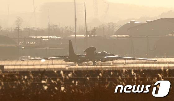 (평택=뉴스1) 김영운 기자 = 북한이 동쪽으로 '미상 발사체'를 쐈다고 합동참모본부가 밝힌 14일 오후 경기도 평택시 주한미군 오산공군기지에 U-2S 고고도정찰기가 착륙하고 있다. 북한이 이날 쏜 발사체가 탄도미사일로 확인될 경우 지난 5일과 11일 자칭 '극초음속미사일'을 시험발사한 이후 올 들어 세 번째가 된다. 2022.1.14/뉴스1