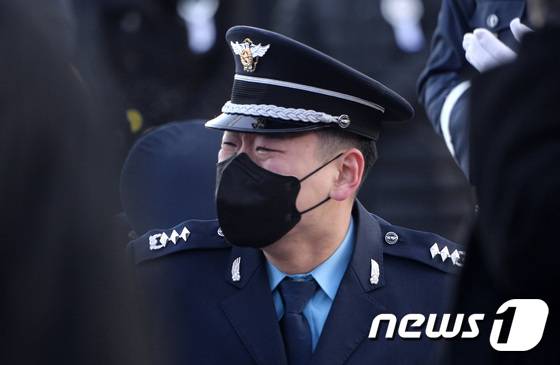 (대전=뉴스1) 김기태 기자 = 공군 KF-5E 전투기 추락사고로 순직한 고(故) 심정민 소령(29·공사 64기·추서 계급)의 안장식이 14일 국립대전현충원에서 엄수되고 있다. 2022.1.14/뉴스1