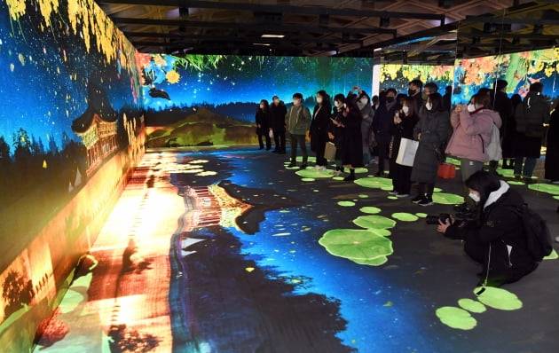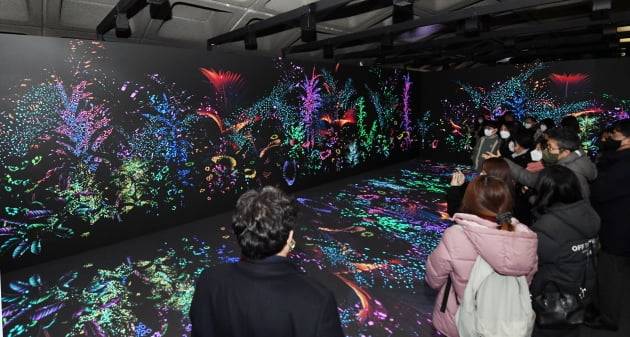 관람객들이 미디어아트 작품을 감상하고 있다.