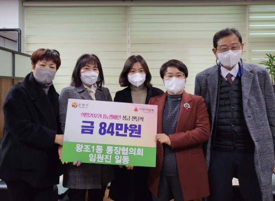 전남 순천시 왕조1동 통장협의회(회장 박진숙)는 임원들이 이웃돕기 성금 84만원을 기탁하며 희망2022나눔캠페인 기부행렬에 동참했다고 14일 밝혔다.