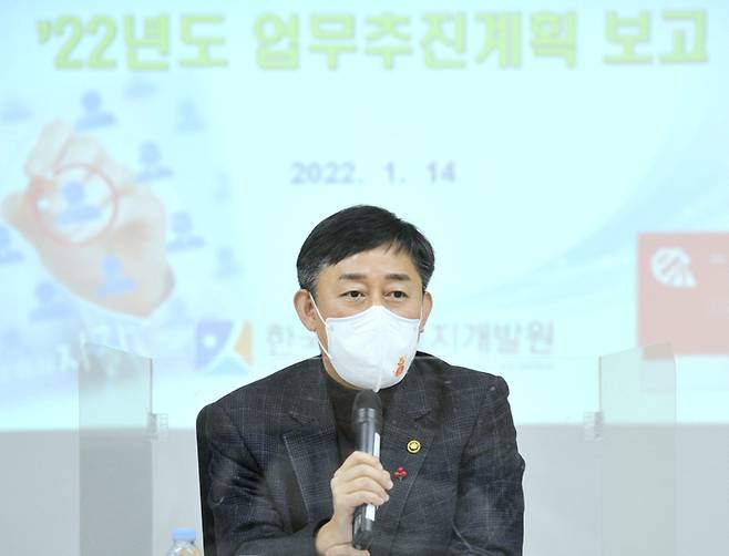 [서울=뉴시스] 조성우 기자 = 양성일 보건복지부 제1차관이 14일 오후 서울 서대문구 한국자활복지개발원을 2022년 자활사업 추진 상황 점검차 방문해 인사말을 하고 있다. (사진=보건복지부 제공) 2022.01.14. photo@newsis.com *재판매 및 DB 금지