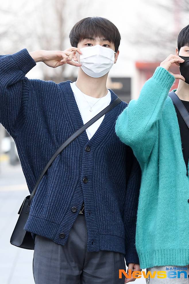 AB6IX(에이비식스) 멤버 이대휘와 전웅 그리고 BDC 멤버 김시훈이 1월 14일 오후 서울 양천구 SBS목동에서 진행된 SBS 파워FM '웬디의 영스트리트' 라디오 녹음 일정을 마치고 방송국을 나서고 있다.