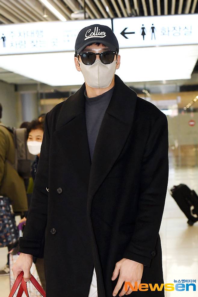 배우 안보현(Ahn Bo Hyun)이 1월 14일 오후 서울 강서구 방화동 김포국제공항 국내선을 통해 제주도에서의 광고 촬영을 마치고 도착하고 있다.