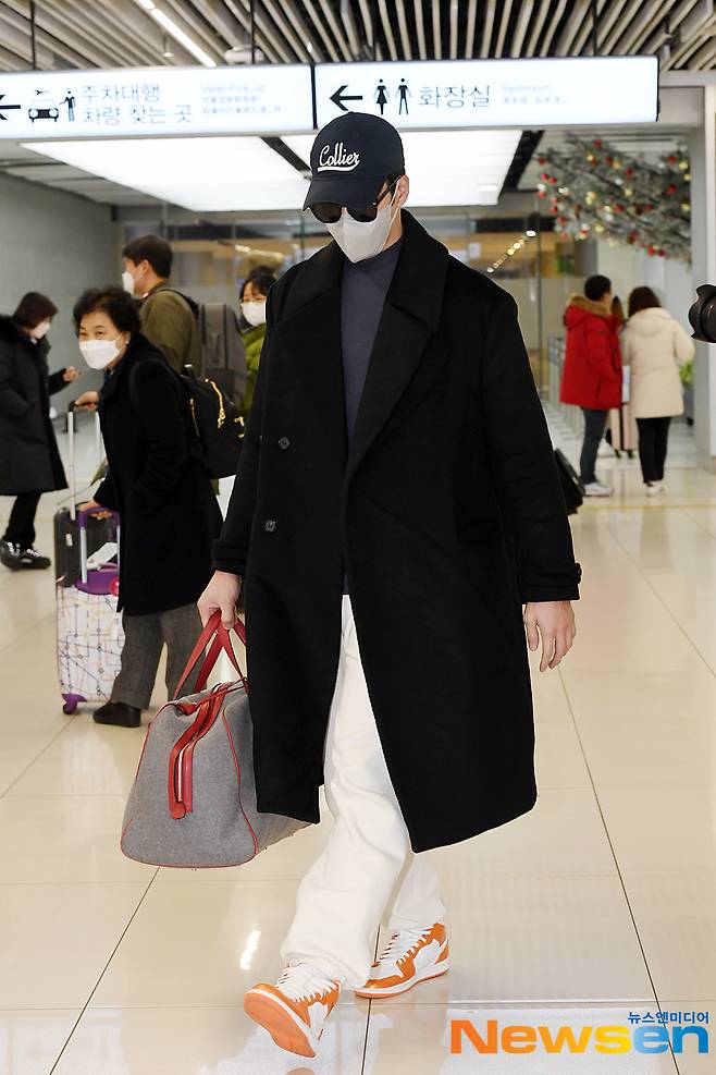 배우 안보현(Ahn Bo Hyun)이 1월 14일 오후 서울 강서구 방화동 김포국제공항 국내선을 통해 제주도에서의 광고 촬영을 마치고 도착하고 있다.