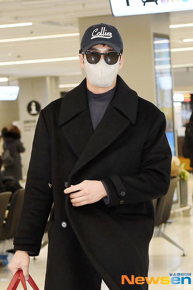 배우 안보현(Ahn Bo Hyun)이 1월 14일 오후 서울 강서구 방화동 김포국제공항 국내선을 통해 제주도에서의 광고 촬영을 마치고 도착하고 있다.