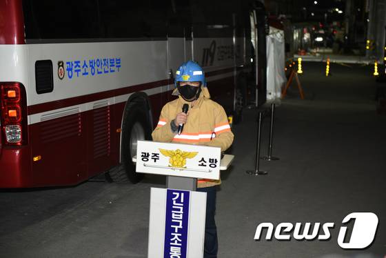 (광주=뉴스1) 김동수 기자 = 문희준 광주 서부소방서장이 14일 오후 광주 붕괴사고 현장에서 사흘만에 구조된 실종자 1명의 신원에 대한 브리핑을 하고 있다.2022.1.14/뉴스1