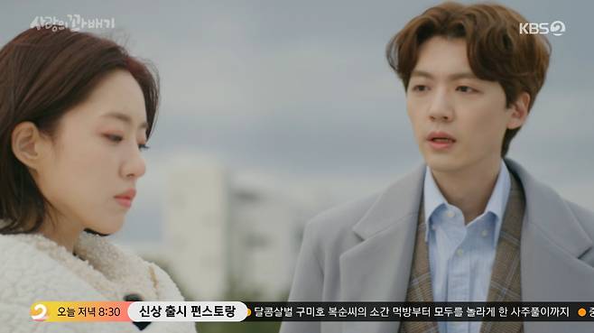 14일 오후 방송된 KBS 2TV 일일드라마 '사랑의 꽈배기'에서는 오소리(함은정 분)이 조경준(장세현 분)에게 결혼을 제안했다.