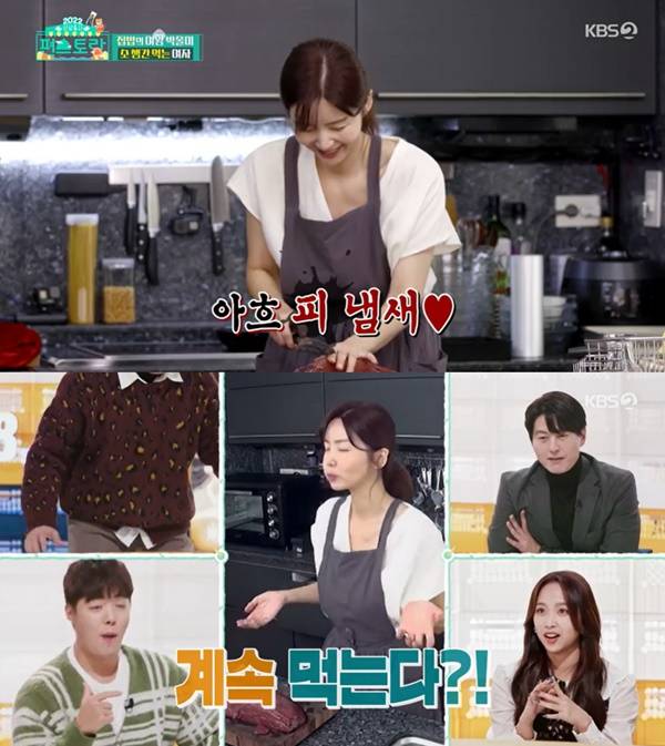 14일 방송된 KBS2 예능프로그램 '신상출시 편스토랑'(이하 '편스토랑')에서는 박솔미가 집에서 직접 회칼로 생간을 손질하는 모습이 전파를 탔다.