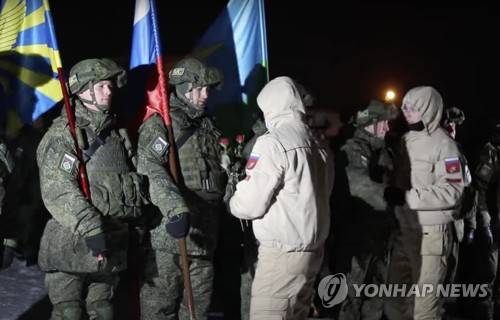epa09684927 A handout still image taken from handout video made available by the Russian Defence Ministry press service shows Russian peacekeepers attending a welcome ceremony when they returned after finishing the mission in Kazakhstan on the military base in Ivanovo, Russia, 14 January 2022. The withdrawal of the CSTO peacekeeping contingent from Kazakhstan began on January 13 and will be completed within ten days. In accordance with the decision of the CSTO Collective Security Council adopted on 06 January 2022, the collective peacekeeping forces of the Collective Security Treaty Organization (CSTO) have been sent 'for a limited time to stabilise and normalise the situation to Kazakhstan' at the request of the Kazakh president. They include units of the Armed Forces of Russia, Belarus, Armenia, Tajikistan and Kyrgyzstan. The Russian Ministry of Defence announced on 08 January that the transfer of the Russian contingent of the CSTO peacekeeping forces to Kazakhstan's 'Almaty' and 'Zhitygen' airfields continued by military transport aircraft from Russia's airfields in the Moscow, Ivanovo, and Ulyanovsk regions. EPA/RUSSIAN DEFENCE MINISTRY PRESS SERVICE/HANDOUT HANDOUT EDITORIAL USE ONLY/NO SALES