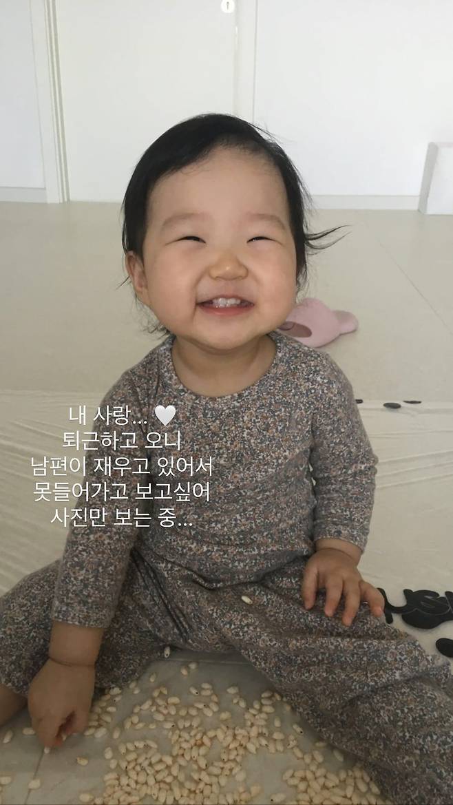 최희는 14일 자신의 SNS를 통해 "내 사랑..♥ 퇴근하고 오니 남편이 재우고 있어서 못 들어가고 보고 싶어 사진만 보는 중.."이라는 글과 함께 한 장의 사진을 게재했다.