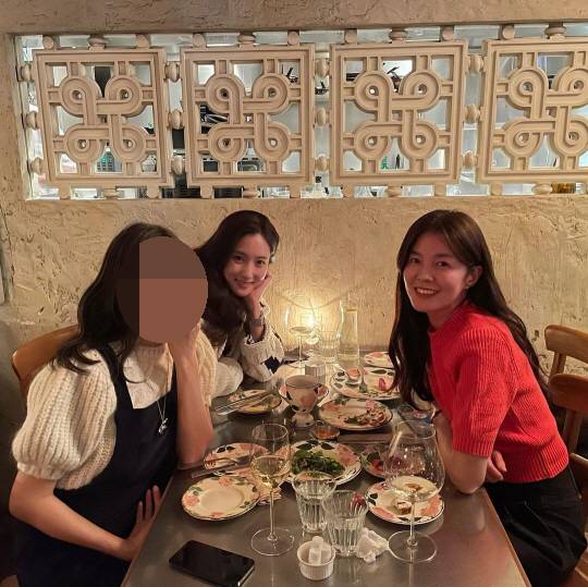 사진에서 김성은은 왕빛나, 지인과 함께 즐거운 시간을 보내고 있는 모습.