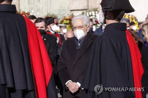 epa09685163 Italian President Sergio Mattarella attends the State Funeral of late president of the European Parliament David Sassoli,at the Basilica of Santa Maria degli Angeli e dei Martiri in Rome, Italy, 14 January 2022. EPA/GIUSEPPE LAMI