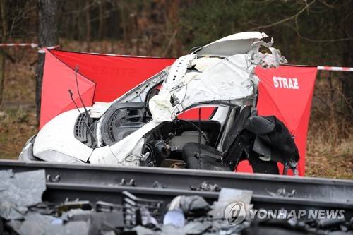 epa09685176 Aftermath of an accident that occurred when a railbus and a car collided in Widelka village, south-eastern Poland, 14 January 2022. The driver of a car was reportedly killed in the accident. EPA/Darek Delmanowicz POLAND OUT
