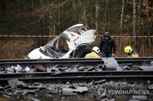 epa09685183 Aftermath of an accident that occurred when a railbus and a car collided in Widelka village, south-eastern Poland, 14 January 2022. The driver of a car was reportedly killed in the accident. EPA/Darek Delmanowicz POLAND OUT