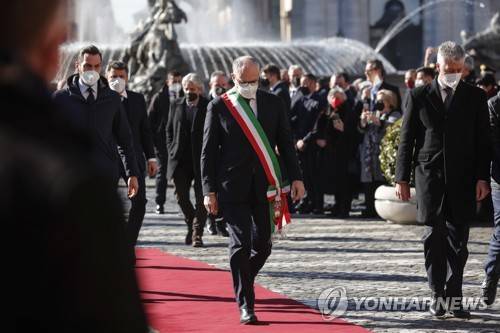 epa09685191 Mayor of Rome Roberto Gualtieri attends the State Funeral of late president of the European Parliament David Sassoli,at the Basilica of Santa Maria degli Angeli e dei Martiri in Rome, Italy, 14 January 2022. EPA/GIUSEPPE LAMI