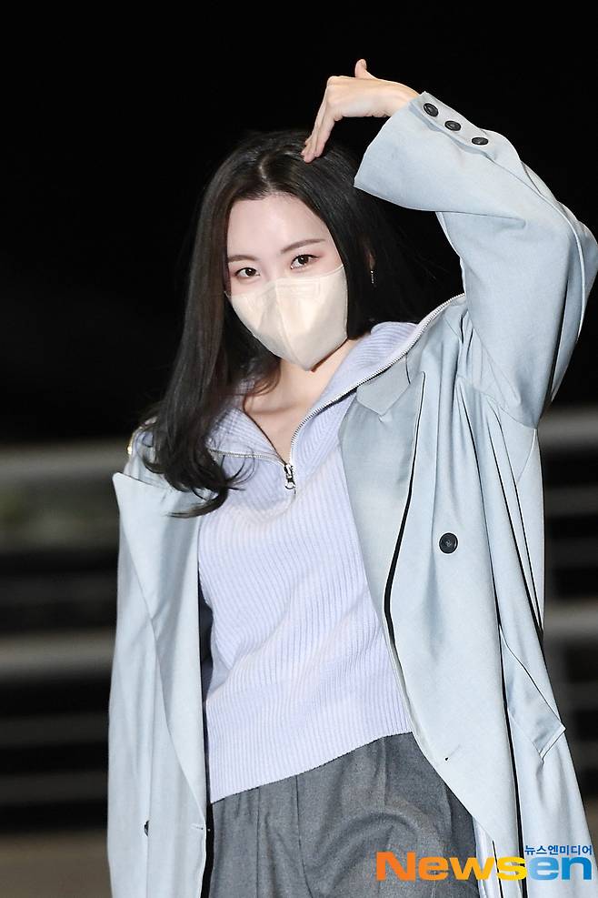가수 선미가 1월 14일 오후 인천 중구 운서동 인천국제공항 제 1여객터미널을 통해 두바이에서 열리는 두바이 엑스포 한국관 한국의 날 케이팝 콘서트 일정에 참석하기 위해 두바이로 출국하고 있다.
