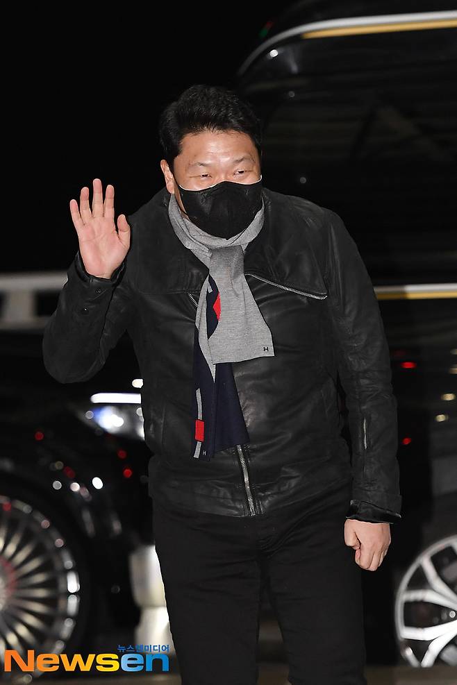 가수 싸이가 1월 14일 오후 인천 중구 운서동 인천국제공항 제 1여객터미널을 통해 두바이에서 열리는 두바이 엑스포 한국관 한국의 날 케이팝 콘서트 일정에 참석하기 위해 두바이로 출국하고 있다.