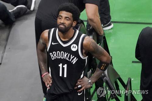 FILE - Brooklyn Nets guard Kyrie Irving looks up at the fans at TD Garden after they defeated the Boston Celtics in Game 4 during an NBA basketball first-round playoff series in Boston, in this Sunday, May 30, 2021. Athletes have been put at center court of arguments over COVID vaccines. The NFL's Aaron Rodgers, the NBA's Kyrie Irving, and tennis's Novak Djokovic, have each become cultural touchstones in the cultural controversy. (AP Photo/Elise Amendola, File) MAY 30, 2021, FILE PHOTO