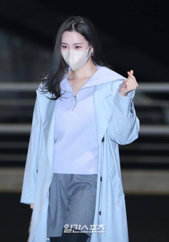 가수 선미가 14일 밤 두바이에서 열리는 두바이엑스포 한국관 한국의 날 케이팝 콘서트에 참석차 인천국제공항 1터미널을 통해 두바이로 출국하고 있다.