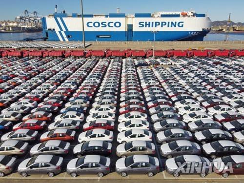 (220114) -- SHANGHAI, Jan. 14, 2022 (Xinhua) -- Aerial photo taken on Dec. 7, 2021 shows vehicles before being loaded onto a freight ship at Yantai Port, east China's Shandong Province. China's foreign trade moved up another notch in 2021, exceeding 6 trillion U.S. dollars for the first time, despite the COVID-19 pandemic continuing to weigh on global trade, official data showed Friday.