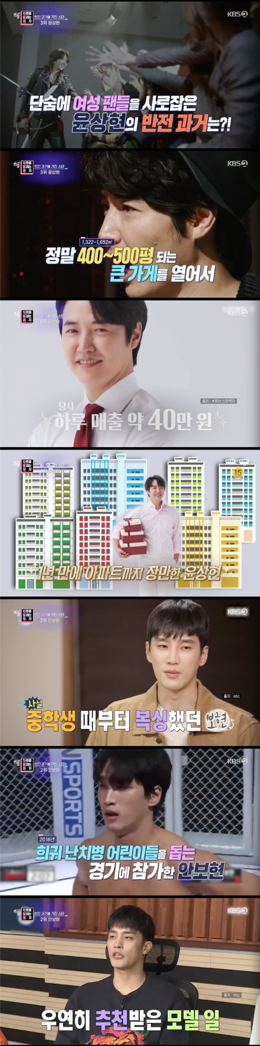 3위는 윤상현이었다. 윤상현은 32살에 연예계에 데뷔했다고. 윤상현은 한 방송에 출연해 "원래 꿈이 요식업계의 황태자였다. 400평~500평 되는 큰 가게를 열어서 분위기 좋고 맛있다는 소리를 듣고 싶었다"고 털어놓은 바 있다.