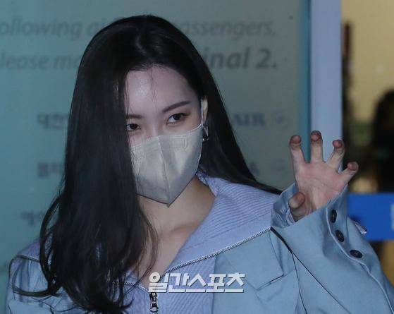 가수 선미가 14일 밤 두바이에서 열리는 두바이엑스포 한국관 한국의 날 케이팝 콘서트에 참석차 인천국제공항 1터미널을 통해 두바이로 출국하고 있다.